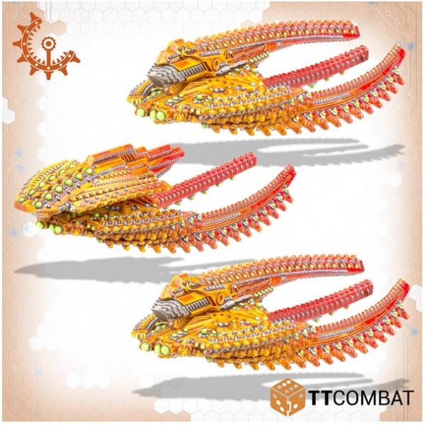 Contains 3 resin miniatures and plastic Dropfleet Commander bases and flight stands.