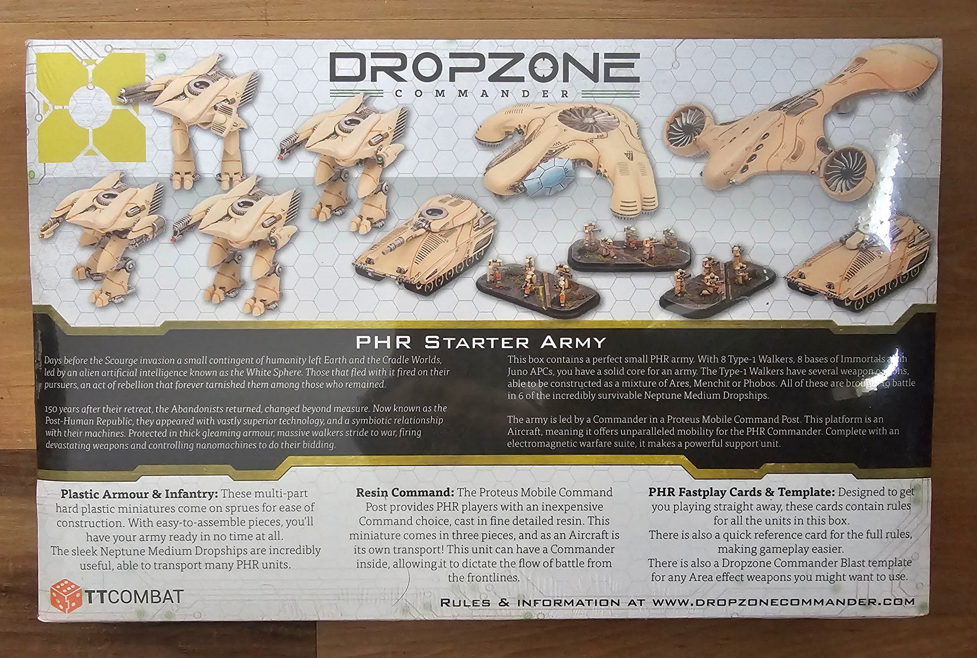 - PHR Fastplay Cards & Template: Designed to get you playing straight away, these cards contain rules for all the units in this box. There is also a quick reference card for the full rules, making gameplay easier. There is also a Dropzone Commander Blast template for any Area effect weapons you might want to use.