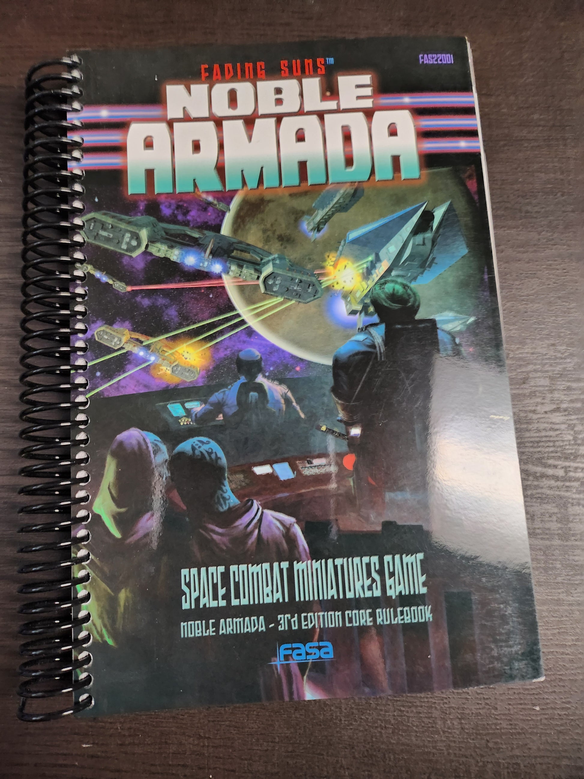 It is the beginning of the 51st Century. In the wake of the Emperor Wars and Alexius` ascension to the Phoenix Throne, the noble houses find themselves scrambling to maintain their existing power and increase it in the face of a strong empire. Fighting with each other in a shadow conflict, they battle for resources, fiefs, and pride while trying to avoid interdiction from the Imperial fleet. In the idleness of peace, young nobles beginning their careers take small fleets to capture ships from their rivals and build their own legends. Farther out in the dark, fleets patrol their systems to defend against pirates and raiders from other noble houses. At the edges of the Empire the Kurgan Caliphate, Vuldrok Raiders, Symbiots, and Vau all test the mettle of the fleets of the Phoenix Empire and its Royal Houses. Drawing on the deep background of the Fading Suns universe to provide a backdrop for exciting fleet engagements, Noble Armada is a tactical, miniatures-based, space fleet battle game designed to deliver an experience that balances deep tactics with cinematic action.