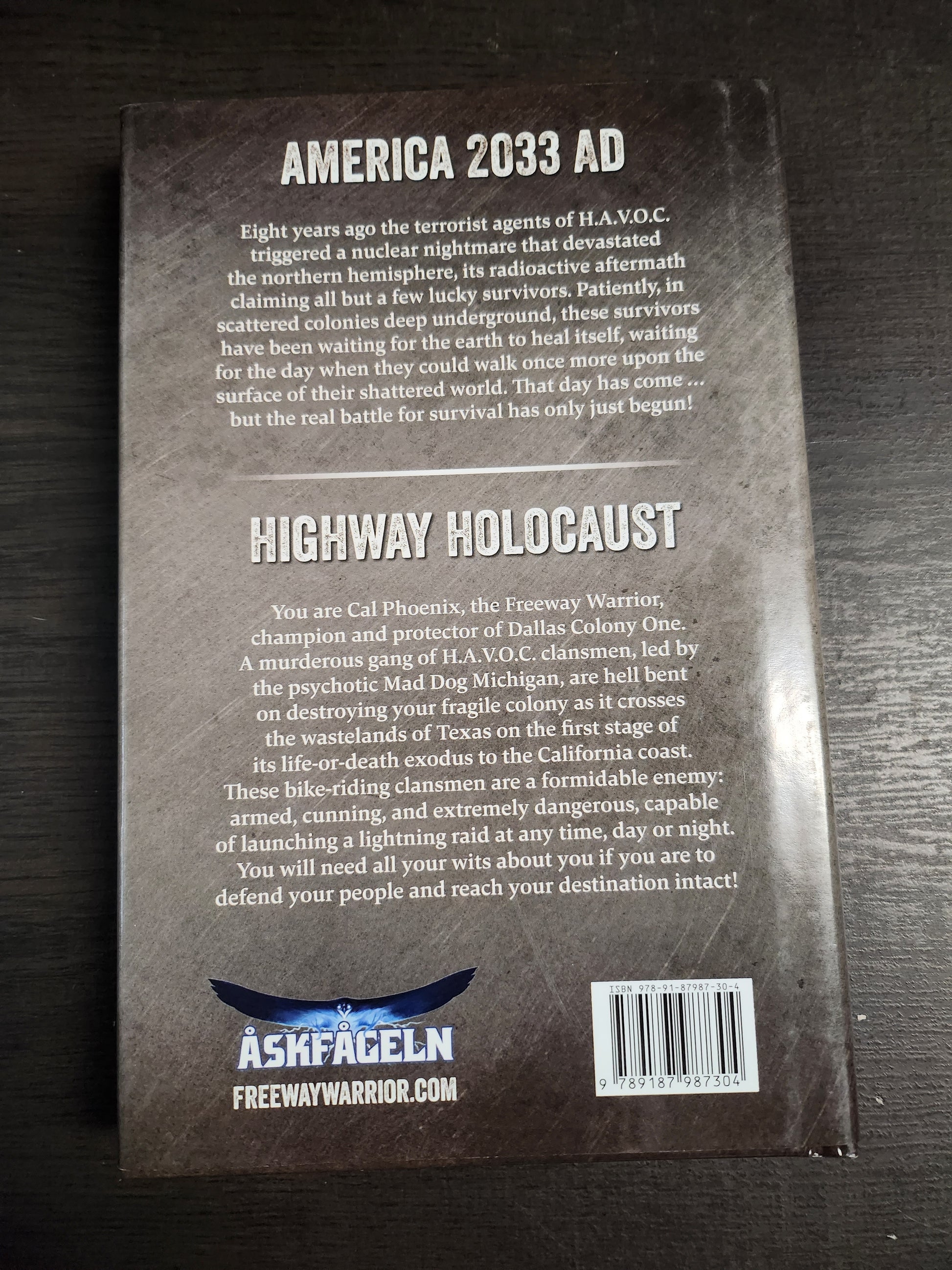 That day has come …but the real battle for survival has only just begun! Highway Holocaust. You are Cal Phoenix, the Freeway Warrior, champion and protector of Dallas Colony One. A murderous gang of H.A.V.O.C. clansmen, led by the psychotic Mad Dog Michigan, are hell bent on destroying your fragile colony as it crosses the wastelands of Texas on the first stage of its life-or-death exodus to the California coast. These bike-riding clansmen are a formidable enemy: armed, cunning, and extremely dangerous, capable of launching a lightning raid at any time, day or night. You will need all your wits about you if you are to defend your people and reach your destination intact!