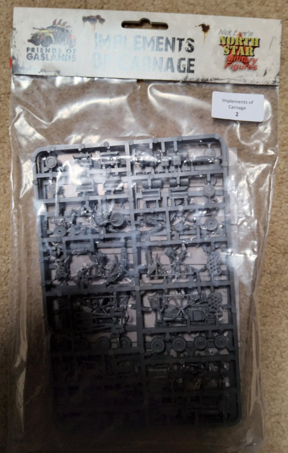 Implements of Carnage are scaled for Hotwheels / Matchbox style vehicles. Supplied unpainted.