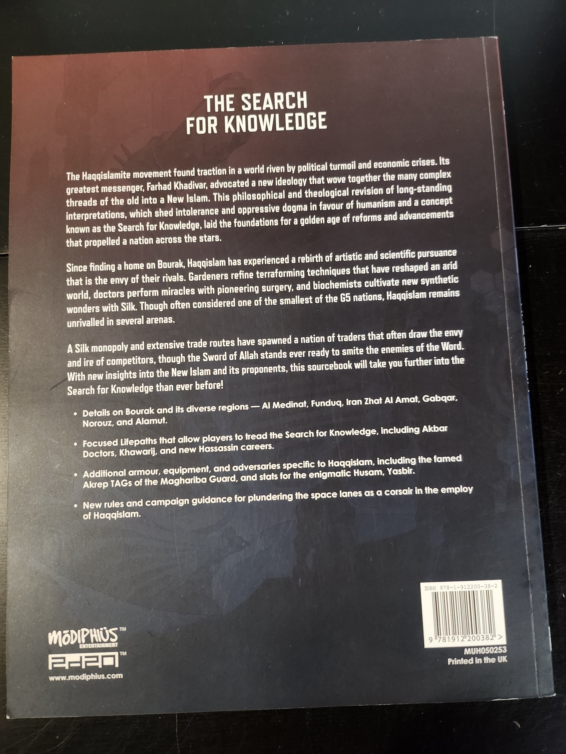 - Additional armour, equipment, and adversaries specifi c to Haqqislam, including the famed Akrep TAGs of the Maghariba Guard, and stats for the enigmatic Husam, Yasbir.