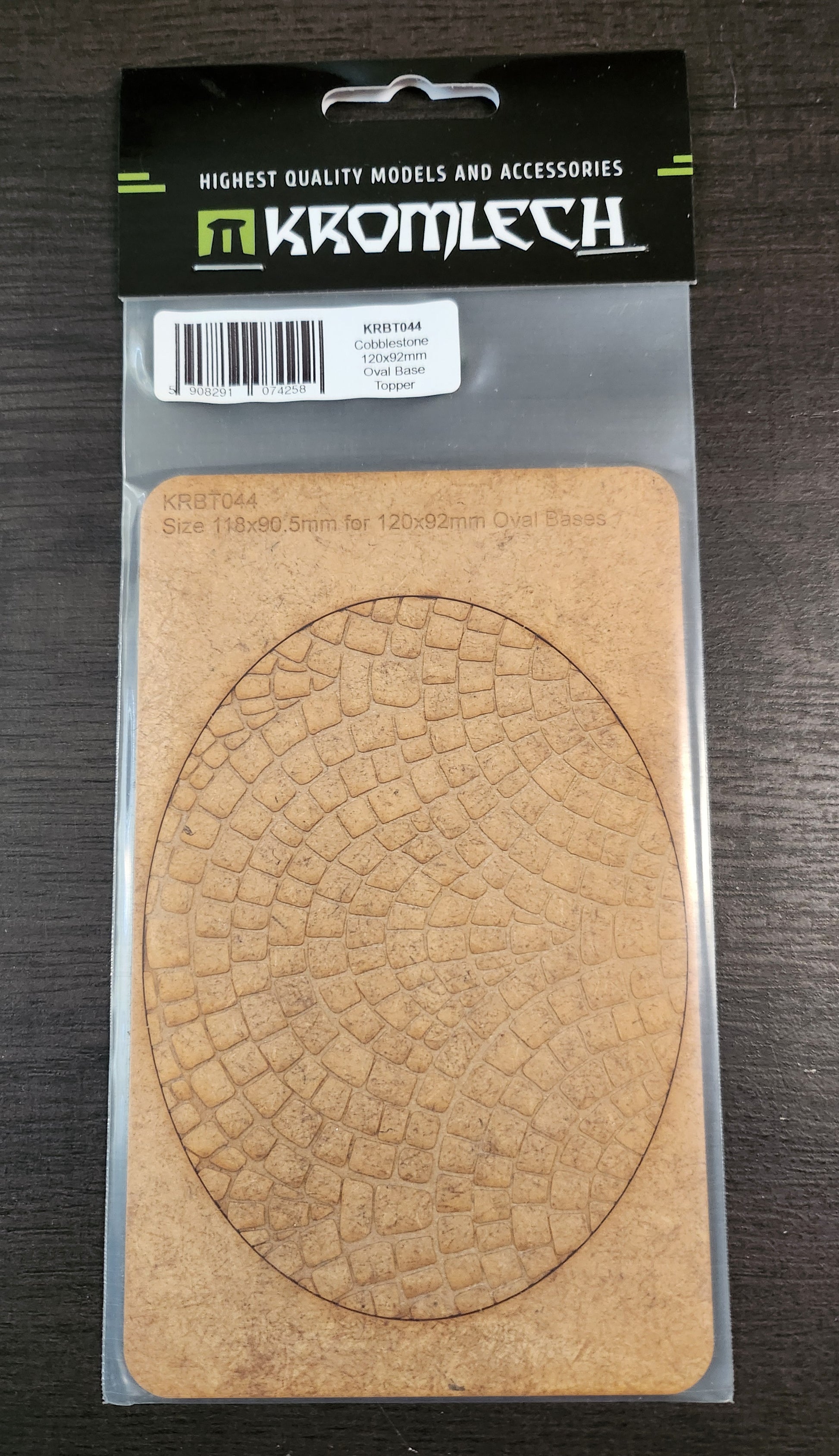 This set contains one oval 120 x 92mm base topper with the Cobblestone theme - designed to fit the most popular grimdark fantasy game systems. It is a quick and easy way to add some unique character to your miniatures. Product is a lasercut from the high quality HDF board with fine details engraved