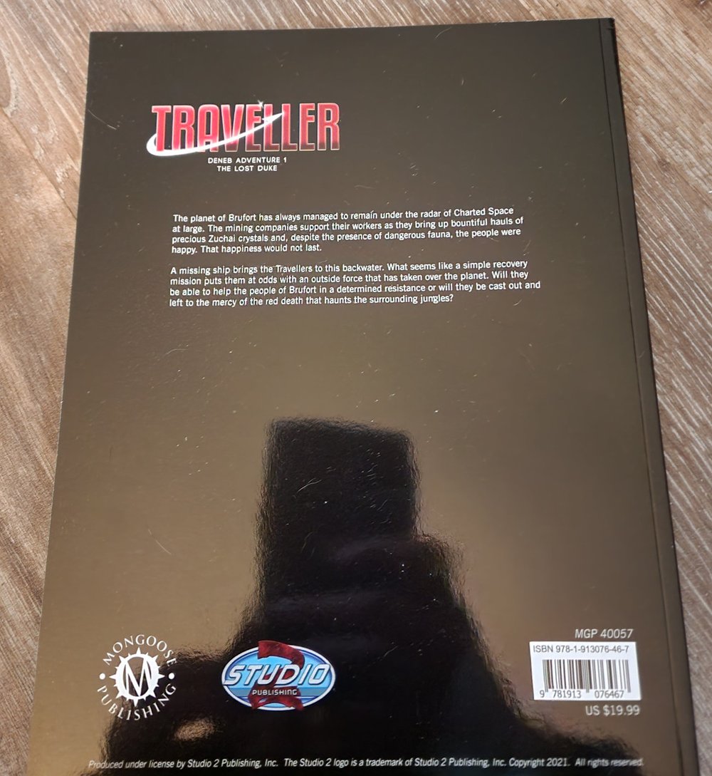 A missing ship brings the Travellers to this backwater. What seems like a simple recovery mission puts them at odds with an outside force that has taken over the planet. Will they be able to help the people of Brufort in a determined resistance or will they be cast out and left to the mercy of the red death that haunts the surrounding jungles?