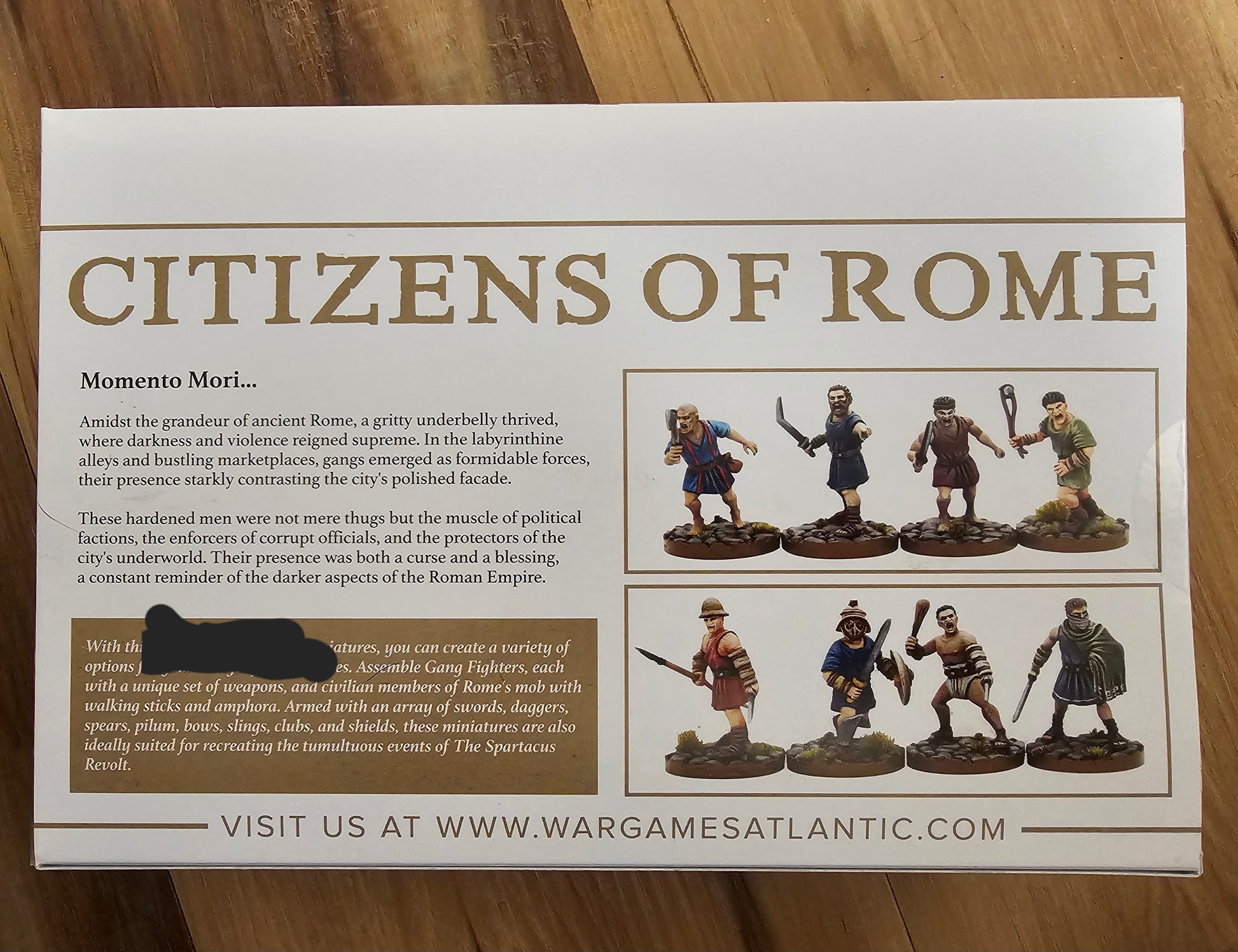 ou can create a variety of options for your Gangs of Rome games. Assemble Gang Fighters, each with a unique set of weapons, and civilian members of Rome's mob with walking sticks and amphora. Armed with an array of swords, daggers, spears, pilum, bows, slings, clubs, and shields, these miniatures are also ideally suited for recreating the tumultuous events of The Spartacus Revolt.