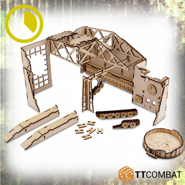 The Warehouse Tank Factory can be used as a standalone corner ruin with plenty of line of sight blocking features or can be combined with the other warehouse kits to make a substantial build.